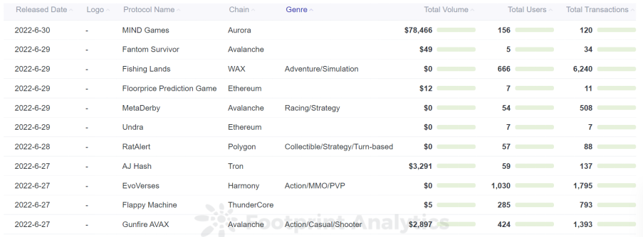 Data Source: Footprint Analytics – June 2022 GameFi Report