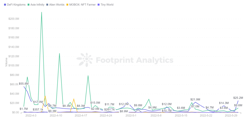 Footprint Analytics -Top 5 Games Trading Volume Trend